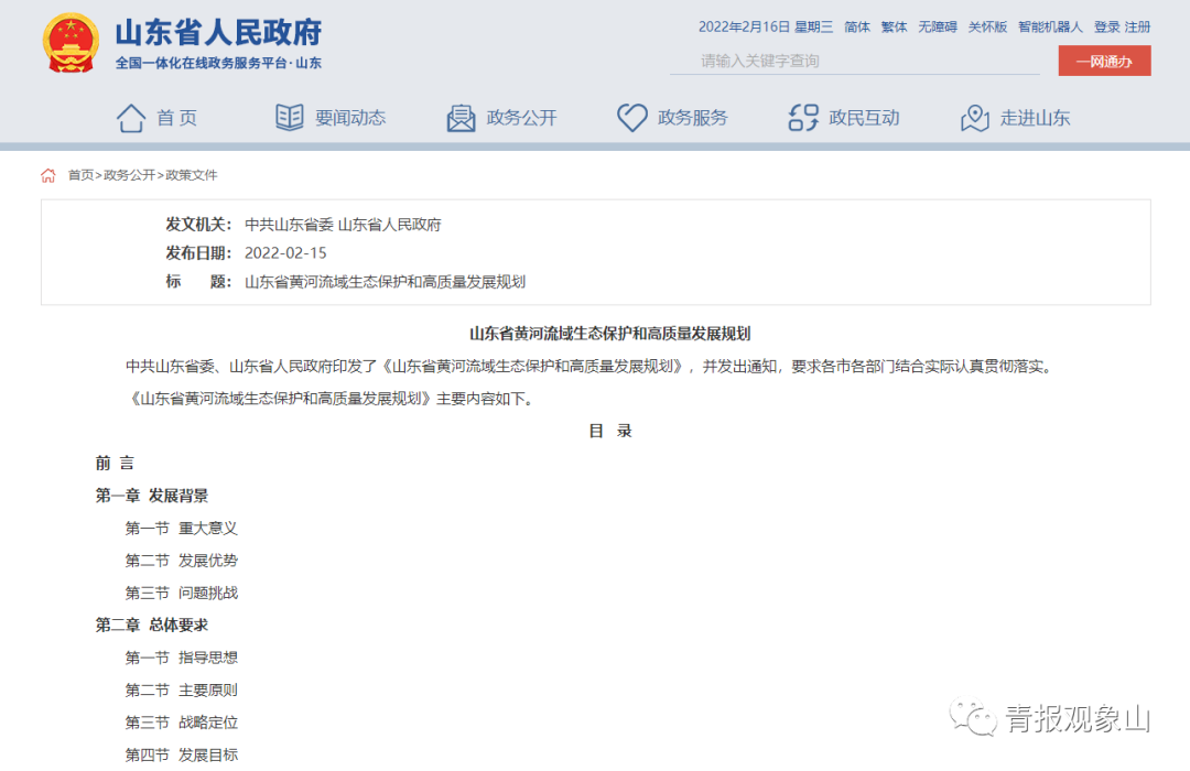2月15日,山东省委省政府印发《山东省黄河流域生态保护和高质量发展规划》(简称《规划》),并发出通知,要求各市各部门结合实际认真贯彻落实。
