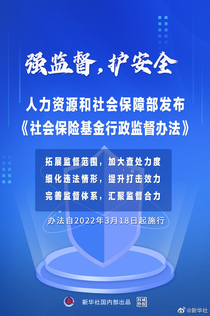 为提升监督效力、更好保障基金安全,人力资源和社会保障部2月22日发布《社会保险基金行政监督办法》,自3月18日起施行。人社部表示,下一步,将指导各地抓好办法的贯彻落实,强化监督查处,以零容忍态度严厉打击欺诈骗保、套保或挪用贪占社保基金的违法行为;同时开展全险种社保基金专项检查,发现一起、查处一起,努力守护好社保基金安全。(记者 姜琳)