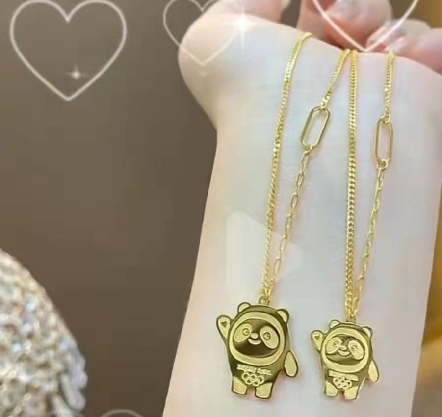 大部分山寨“金墩墩”都是模仿奥林匹克官方旗舰店推出的一款立体“冰墩墩”足金饰品,也有部分商家推出了扁平、大头和袖珍版本的“冰墩墩”金饰,部分商家甚至推出了“银墩墩”。