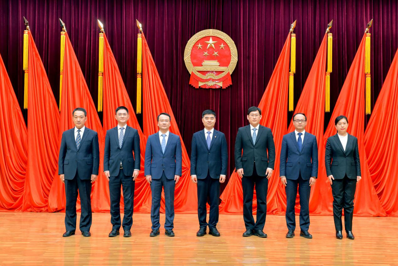 新当选的区人大常委会主任、副主任,区人民政府区长、副区长,区监察委员会主任,区人民法院院长与代表见面并向宪法宣誓。