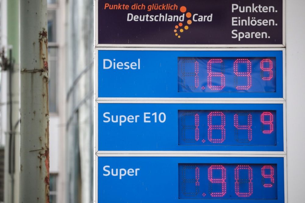 这是2月25日在德国法兰克福拍摄的一家加油站屏幕上显示的油品价格。(新华社发,阿曼多·巴巴尼摄)