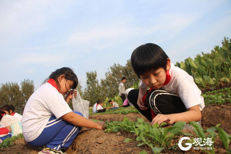 在青岛蓝谷高新区东皋埠小学,孩子多了与大自然密切接触的快乐时光。学校开辟了“阳光生态园”,为每个班级划分了大大小小不同的“责任田”,开发了农耕课程,利用劳动课、课后服务等时间,组织和指导学生进行耕种、除草、收割等田间管理,培养学生尊重劳动、热爱劳动的品质。