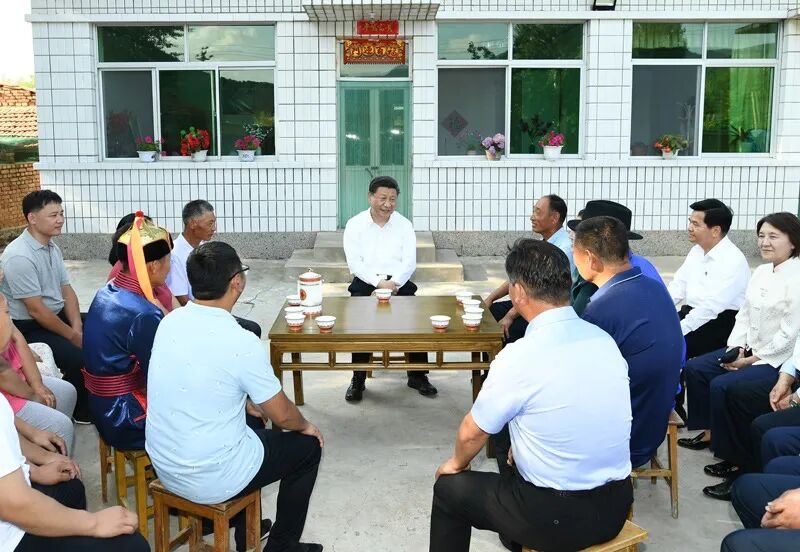2019年7月15日,习近平在内蒙古自治区赤峰市喀喇沁旗河南街道马鞍山村村民张国利家,同基层干部群众代表座谈交流。新华社记者 谢环驰 摄