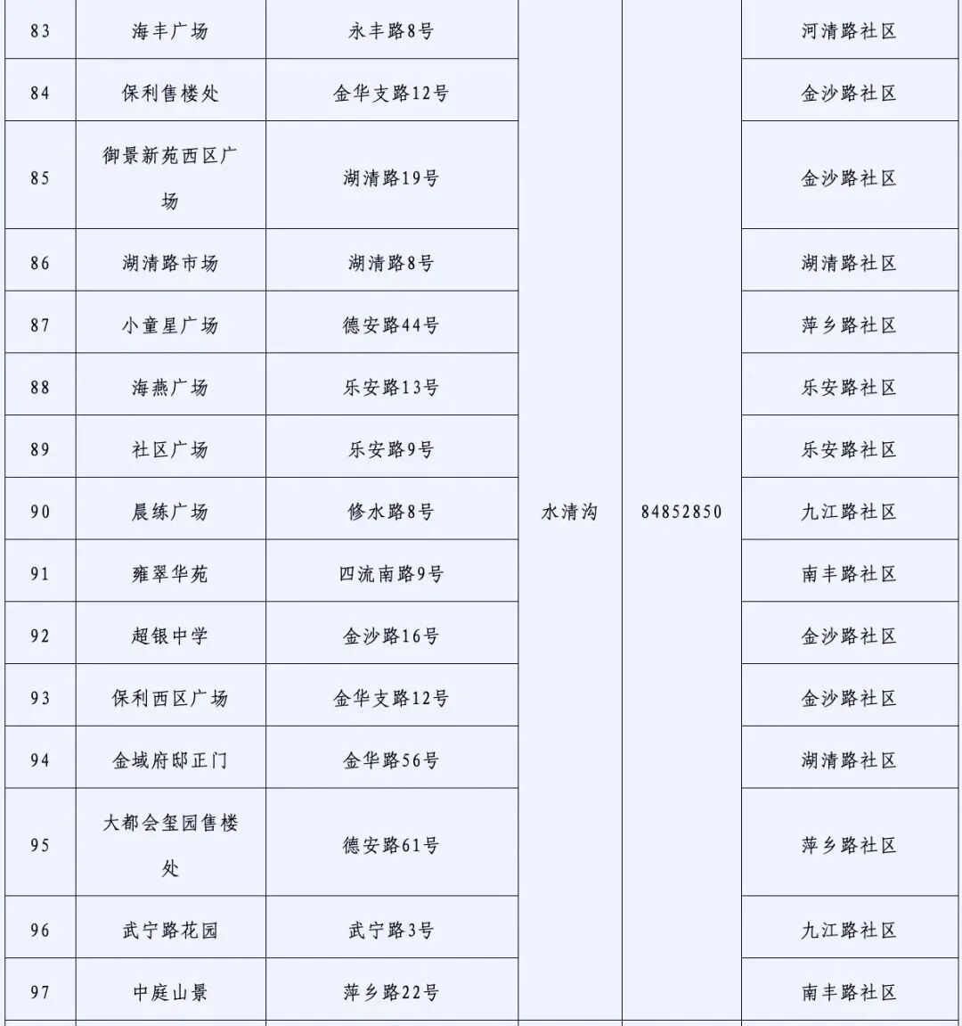 (二)地点:区内各街道社区均就近设置采样点,或咨询所在街道社区(见附件)。