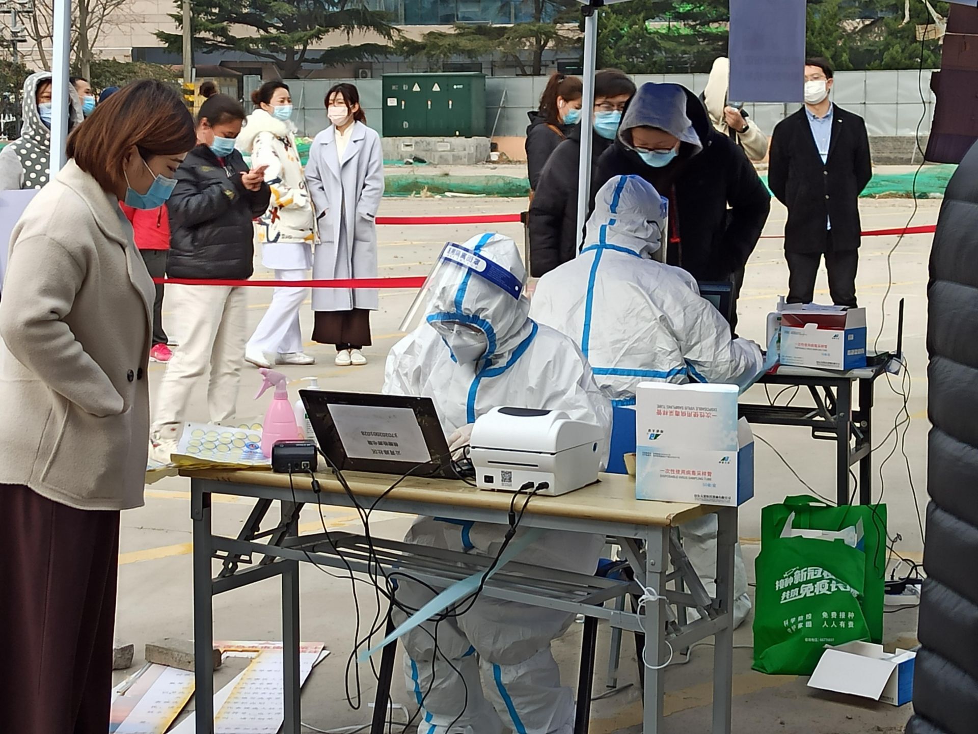 近日,市南区开展核酸检测,国家统计局青岛调查队主动对接“双报到”社区和文明联创共建社区需求,分成两组,一组队员们下沉市南区香港中路街“双报到”云霄路社区,迅速熟悉工作流程,全副武装投入到信息登记工作中。从清晨到夜晚,国家统计局青岛调查队青年党员突击队队员们全程冲锋在前,英勇无畏,全力以赴完成志愿服务任务,全天服务核酸检测一万余人。
