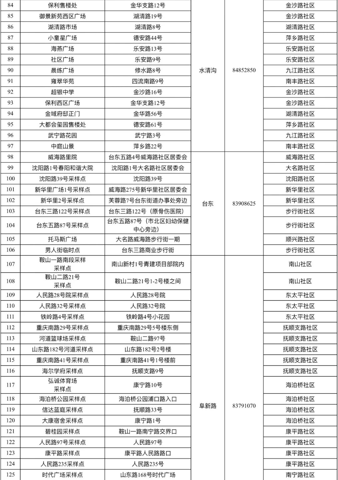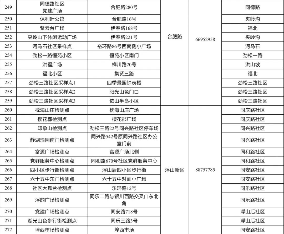 3月19日市北区核酸检测采样点一览表