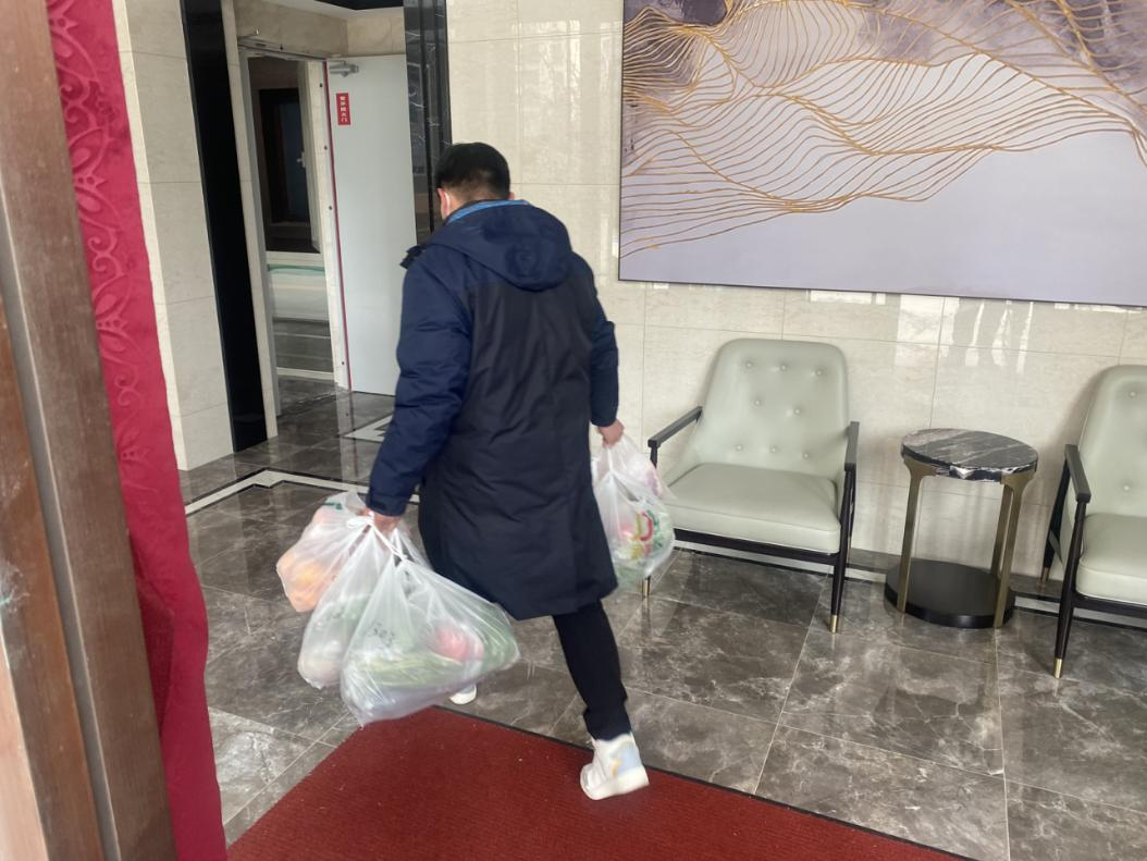 疫情突发,致使很多龙民临时被困,新鲜蔬菜纷纷“告急”!为解决因疫情被困在家的龙民购菜难问题,龙湖智创生活的工作人员马不停歇当起“生活管家”,为独居老人选购蔬菜、水果、肉类及生活用品,为网上下单购物的龙民转运物资并送货上门、服务到家。