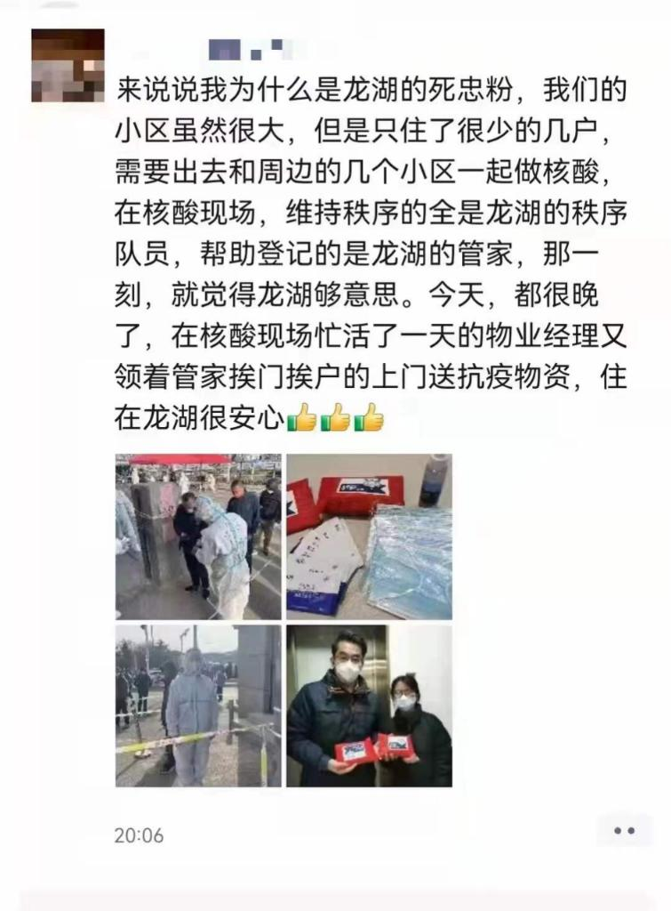 疫情发生后,山东各地的龙湖项目第一时间启动防控应急预案,各项目成立防疫专项工作小组,开启全天候随叫随到服务。全天候协助社区核酸检测,帮业主代买肉菜等生活必需品并送货上门;为学生免费打印学习资料;帮未入住/未在家的业主开窗关窗、浇花、照顾宠物;帮业主代充水费和燃气费;接送行动不便的老人出门做核酸等等。