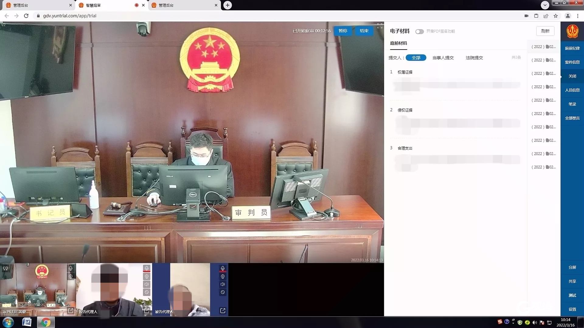青岛日报社/观海新闻3月24日讯 “系统排期显示,今天有41件案件开庭。”查看当天开庭计划,是黄健到办公室后的第一项工作。根据开庭计划,上午九点半,黄健将审理10件侵害作品信息网络传播权纠纷联审案件。因疫情期间不便现场开庭,此10件案件进行了线上审理。庭前,双方当事人已经将诉讼材料和证据材料通过知产案件智审平台同步至庭审中。在征得双方当事人同意后,此次审理采用以庭审录音录像代替笔录的庭审模式,仅耗时15分钟便完成了10件案件的开庭工作,庭审效率得以极大提高。