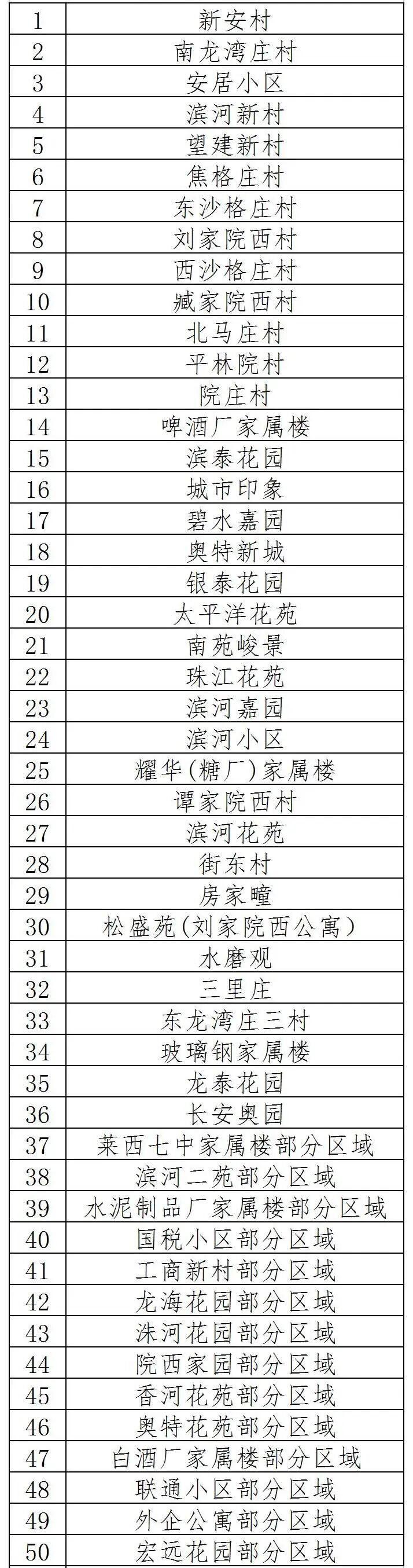 莱西市龙水社区管控区、防范区调整名单