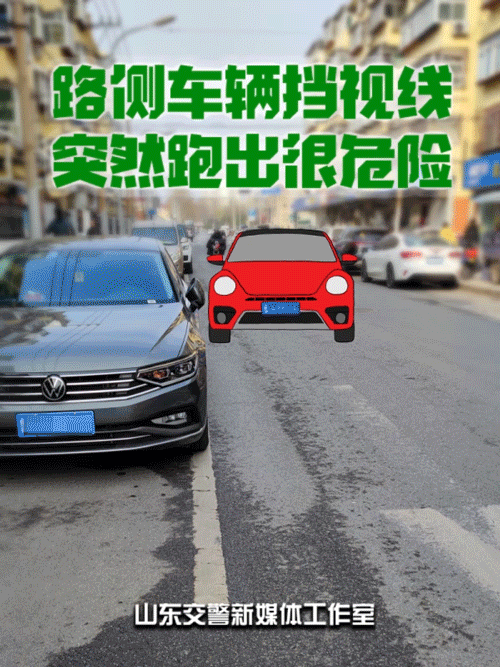 路侧车辆挡视线,突然跑出很危险。