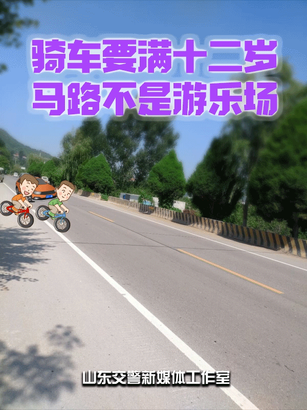 骑车要满十二岁,马路不是游乐场。