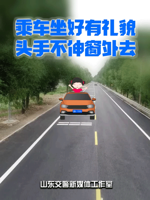 乘车坐好有礼貌,头手不伸窗外去。