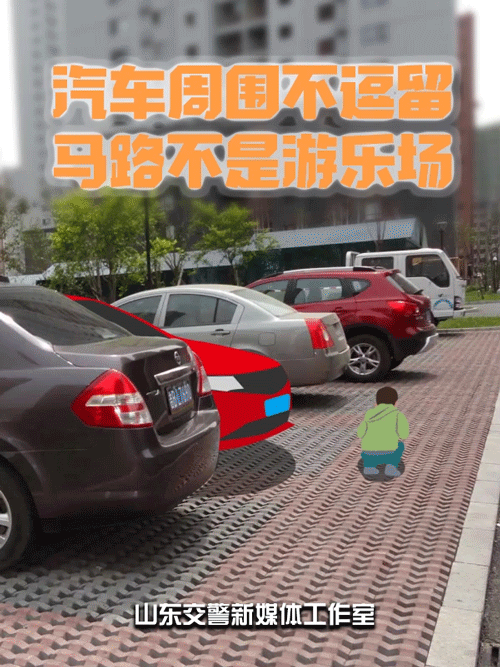 汽车周围不逗留,马路不是游乐场。