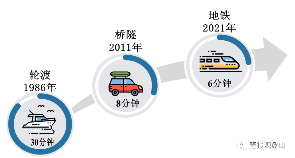 1号线开通开创了东西岸过海交通新方式,成为助推东西北三城同城化发展的新引擎,东岸城区、北岸城区和西海岸新区三城“接轨”,有效串联航空、铁路、公路等交通枢纽,一体化综合交通体系正在形成。