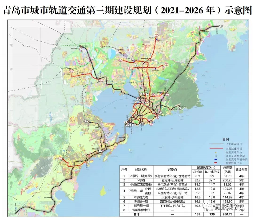 当年申报、当年获批、当年开工。2021年9月,青岛地铁三期规划获国家发改委批复。7个项目、线路总长139公里的青岛地铁三期建设规划获批后,青岛轨道交通获批里程达503公里,位列全国第9位。