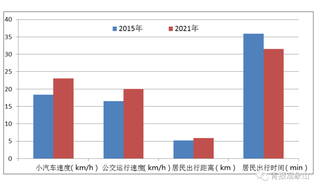 地铁出行拓展了城市出行空间,同时提升了城市交通运转效率。2021年,青岛中心城区居民平均出行距离较2015年增加0.74公里,但居民平均出行时耗较2015年减少约4.5分钟,同等出行距离下出行时间减少约8.5分钟。