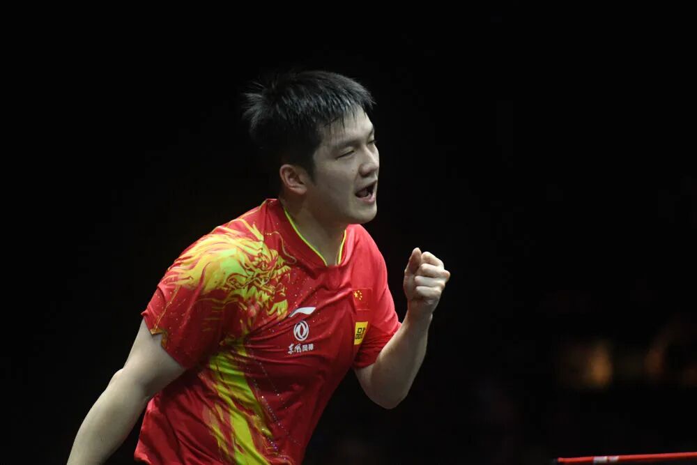 图为樊振东在世界乒乓球职业大联盟(WTT)新加坡大满贯男单决赛后庆祝胜利。新华社发 邓智炜 摄