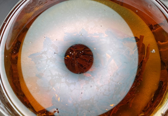 ●当茶膜的弹性模量大于黏性模量时,茶膜会以固态形式呈现,这时你轻微碰它一下,茶膜就会碎裂。