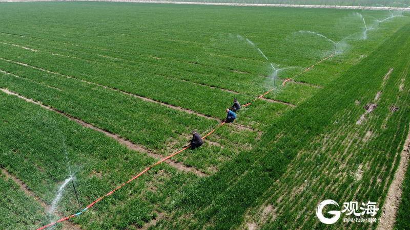 青岛日报社/观海新闻4月8日讯 8日上午,即墨区蓝村街道古城村农民王乃强,他旋动麦田里的机器阀门,田里的喷灌系统将水均匀地洒向麦苗。“我这片麦田有70多亩,用的是伸缩式水肥一体化灌溉技术。土地不板结,还保墒。”王乃强说,传统的灌溉模式浪费水,需要大量的人工,使用水肥一体化灌溉技术之后,用工人数仅为原来的三分之一,化肥使用量比原来减少40%。“我们村使用水肥一体化灌溉技术的小麦种植面积,已达到1300余亩。”蓝村街道古城村党支部书记王德生说。