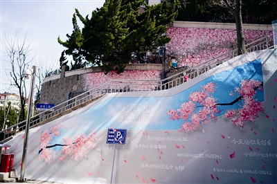 市南区诗情画意、妙趣横生的樱花主题彩绘景观。