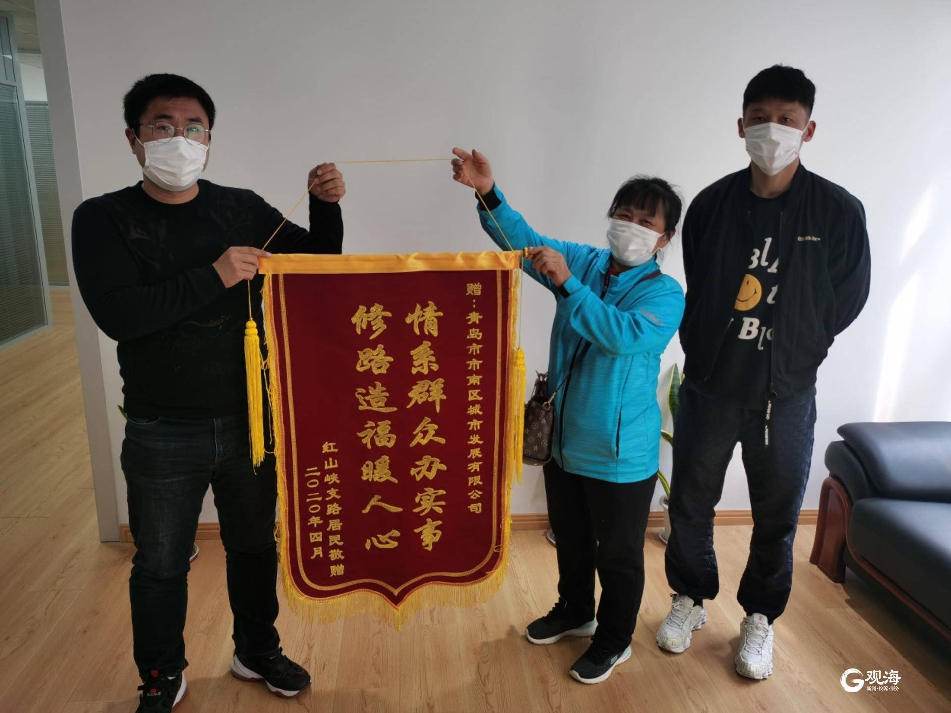 近日,市南区城市发展有限公司收到红山峡支路居民送来的一面写着“情系群众办实事,修路造福暖人心”的致谢锦旗。家住红山峡支路的付女士说:“我老公双腿不好,平日都要做轮椅出行,红山峡支路这里的路面过去有点坑洼,下雨天会有积水,我老公划轮椅出行很不方便。市南区对红山峡支路路面进行修整后,路面平整了好多,方便了残疾人轮椅出行,真是切实解决了我们的一大难题。”