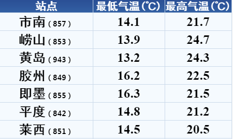 未来三天,青岛沿海和内陆的气温走势完全不同,沿海一带相对平稳,最高气温在15~16℃,最低气温在11~12℃,最适宜的着装是穿一件薄外套。