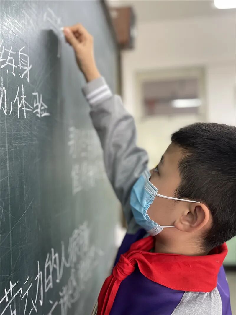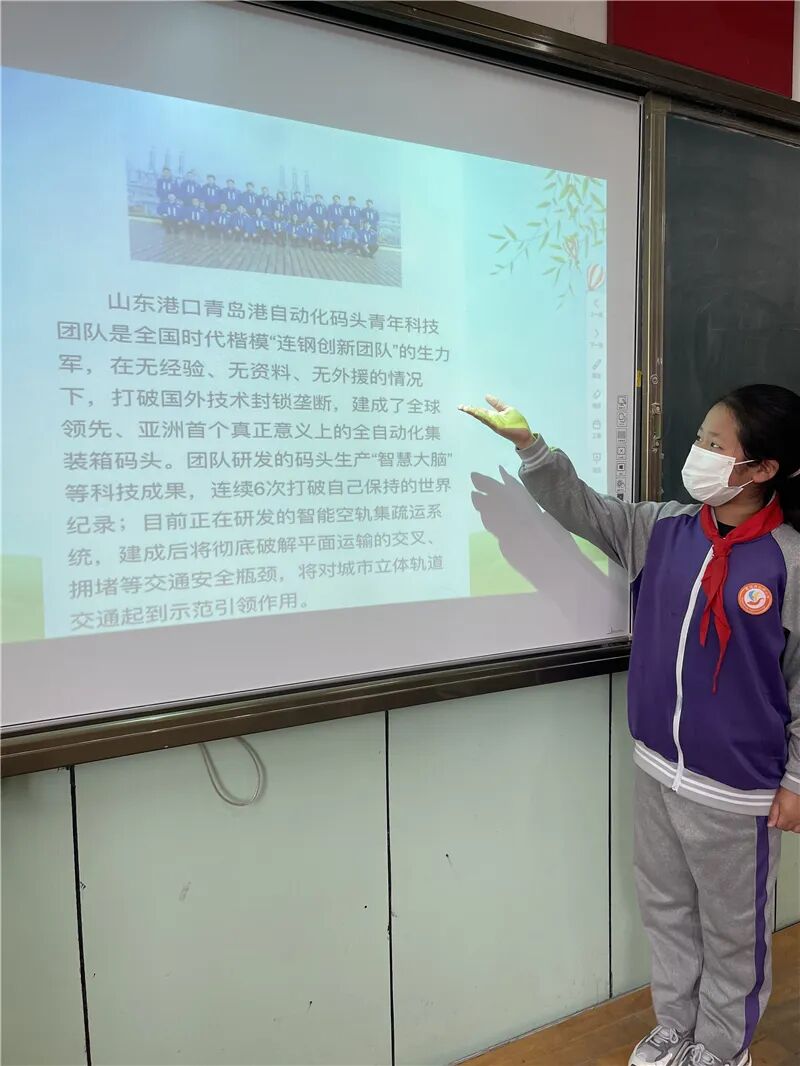 在劳动主题队会上,队员们分享“山东青年创新突击队”“山东青年创新榜样”的青年故事,在交流中,队员们发现“劳动不分贵贱,三百六十行,行行出状元。”