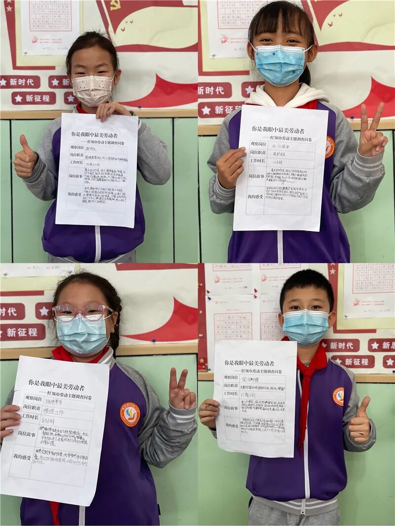 在实践中,队员们更深刻体会到“劳动创造美好生活。”队员们还以一位劳动模范为榜样,立下未来岗位志向,计划劳动清单,坚持每天劳动打卡,在未来的每一天都用辛勤和刻苦书写自己的红领巾故事↓↓↓