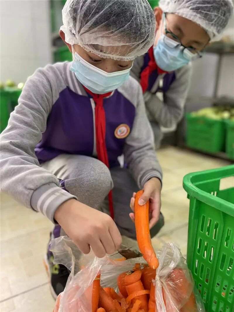 来到食堂,帮助叔叔阿姨们分餐;拿起拖把,打扫校园走廊;佩戴绶带,和保安叔叔维护上放学路队秩序;走进社区,担当社区环保小卫士……↓↓↓