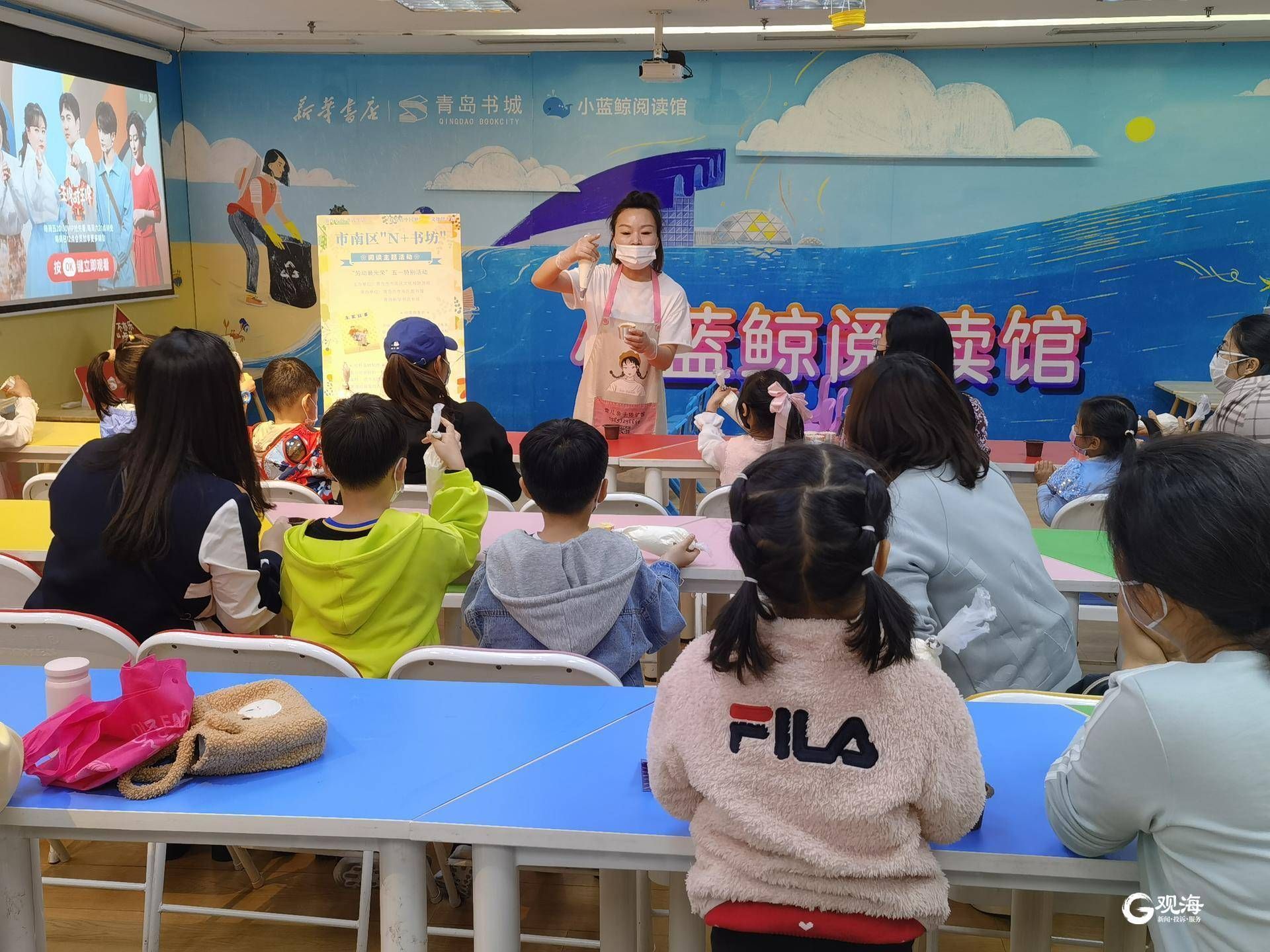 青岛日报社/观海新闻5月1日讯今天上午,市南区“N+书坊”阅读主题活动--“劳动最光荣”亲子阅读活动在青岛书城小蓝鲸阅读馆举办。