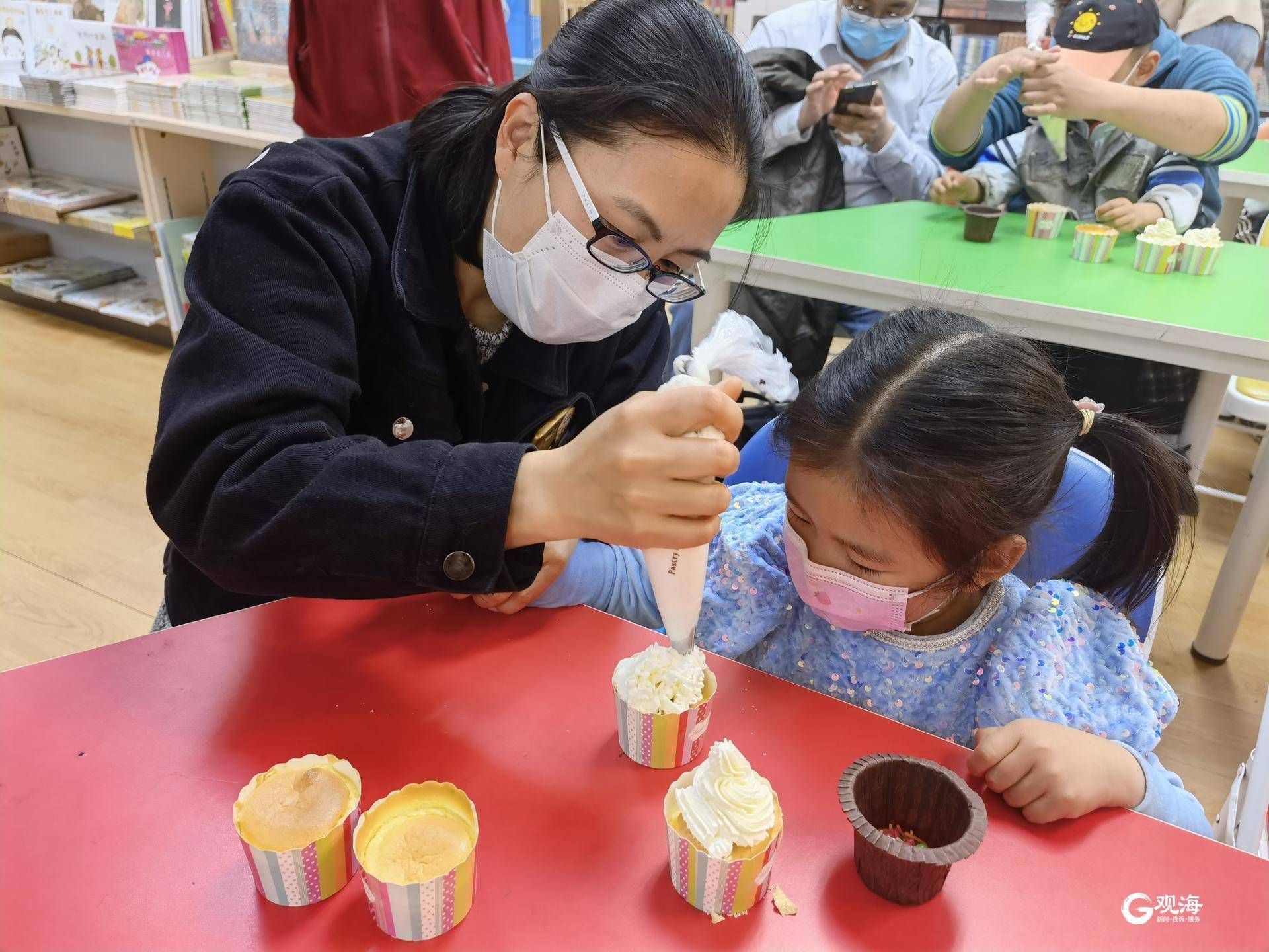 本次活动由市南区文化和旅游局主办,市南区图书馆和青岛新华书店书城承办。活动现场领读者任春蓉老师与小读者们分享经典绘本《朱家故事》,任老师老声情并茂的讲述了一个温暖的家庭故事,通过故事向小朋友们传达和睦温馨的家庭氛围需要家庭成员共同维护、共同承担责任,在劳动节这个特殊的日子告诉大家在日常生活中需要相互尊重、心存感激。绘本故事后,开展了亲子手工蛋糕制作活动,在家长们的帮助和鼓励下,各式各样充满童趣的纸杯蛋糕制作完成,通过亲子手工制作,引导孩子们观察事物特征,进一步加深对绘本故事的认识。活动结束后,小朋友们把这份独一无二的劳动成果送给他们最爱的人。