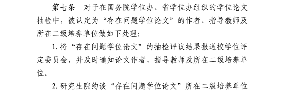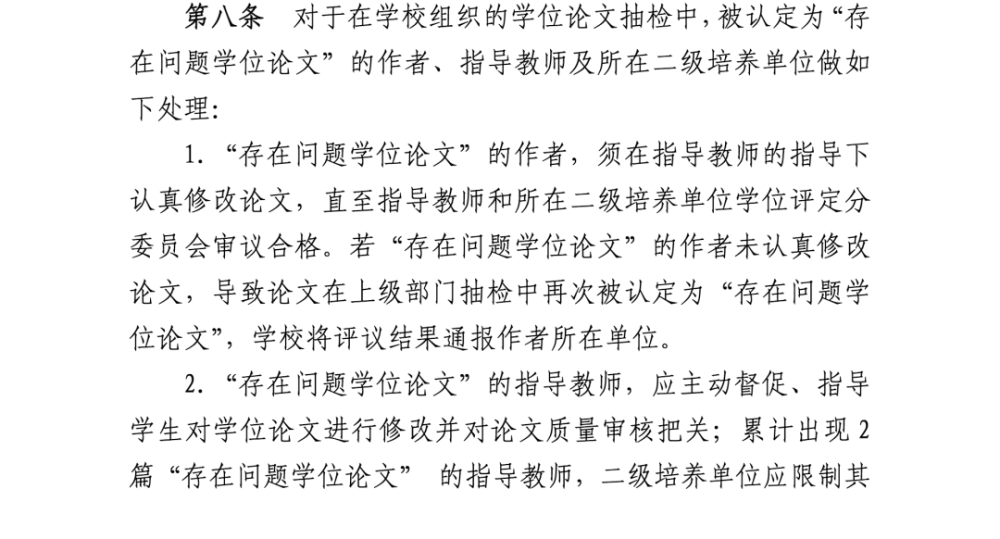 记者注意到,2021年10月,中国矿业大学发布的《研究生学位论文抽检及结果处理办法(试行)》中,明确了对“存在问题学位论文”的处理办法。