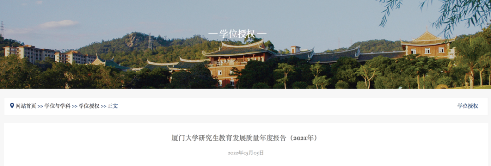 5月5日,厦门大学研究生院发布《厦门大学研究生教育发展质量年度报告(2021年)》。