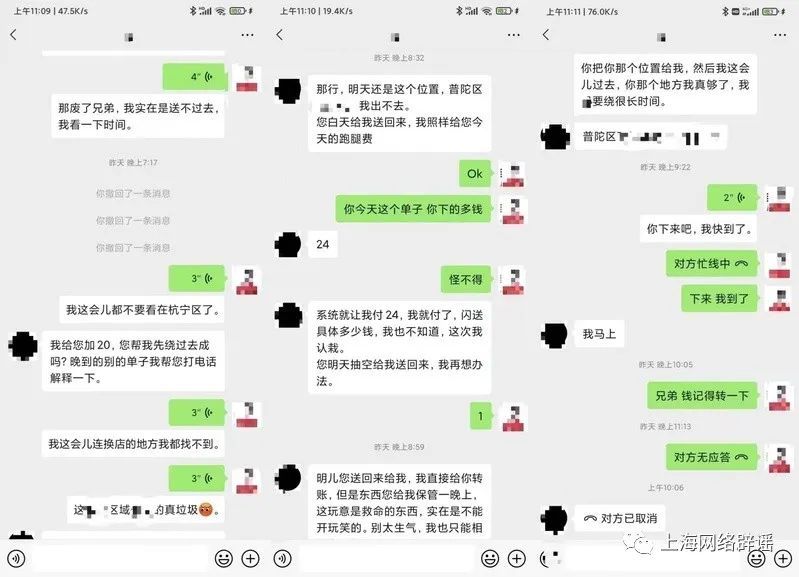 据调查,博主5月13日下午下单,韩师傅接单。之后,韩师傅因有尚未完成的订单、电动车即将没电等情况,告知博主无法按时送达。两人沟通后,韩师傅于20时14分取消订单,表示将把文件送回,博主也愿意按照跑腿订单价格(微信称24元,实际下单价为28元)向其支付报酬。但韩师傅的电瓶车在路上没电了,不得不叫来一位同样做跑腿的老乡,由老乡的电动车用绳子拴着他的电动车前往附近的换电站换电。21时06分,电动车换电成功;21时22分,韩师傅抵达与博主约定小区门口,联系博主收取文件。10多分钟后,博主到达小区门口。小区监控显示,博主返回小区时手中拿着文件,还吃着一根韩师傅送他的香蕉。22时05分,韩师傅通过微信希望博主支付承诺的跑腿费,博主没有理睬。23时13分,韩师傅用微信致电博主,无人应答。然而,就在22时许,博主发布了“我被美团跑腿小哥勒索了”的帖子,帖子里表示自己没有拿到文件。