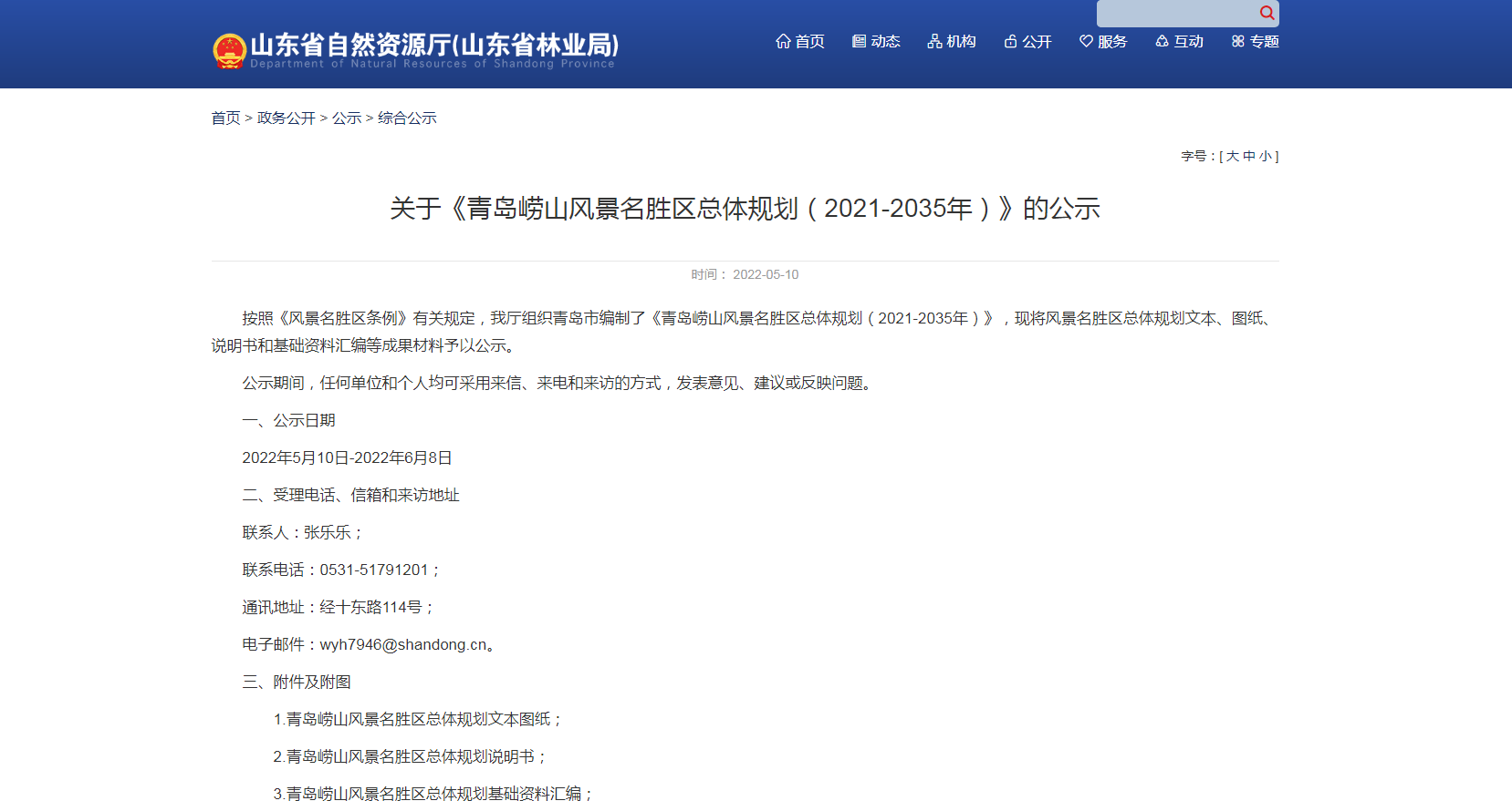 山东省自然资源厅官网截图