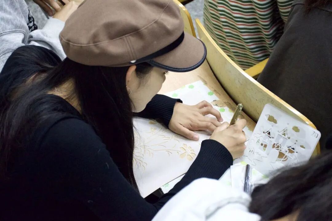 在上手工课之前,闫旭都会自己先试一试,“如果我会操作了,那相信同学们应该也没什么问题。”闫旭会对技术进行一些简化,使它更具有操作性。像手工刻板,大家没有美术功底,画不出想要的图案,就刻不出一个好的板,也就不太可能染出一块好看的蓝印花布。闫旭便买来一些模板,让大家照着这个模板画图,然后再刻,流程相对简单一些,同学们也更容易操作了。基于此前的开课经验,闫旭也不断对课程进行调整和优化,比如,此前学习畲族彩带编制技艺时,他要求同学们手工制作一条织造带,但有些同学上手比较慢,耗时长,后来便调整为用一种织带器进行织造,操作相对简单且效率高。