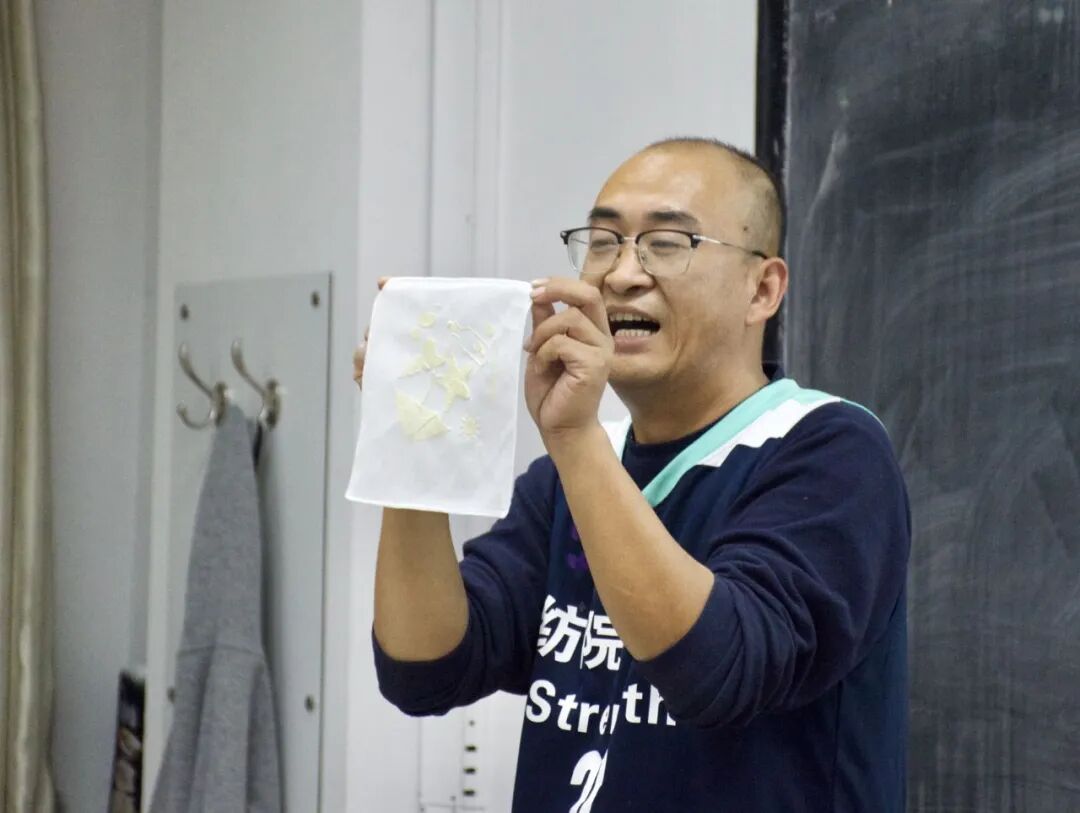 《中国纺织非遗》是由纺织服装学院副教授闫旭新开设的一门通识教育选修课,第一次开课班上仅有21人。但是因课程极其生动有趣,同学们反响甚佳,第二次开课选课人数就爆满了。《中国纺织非遗》随即被设为纺织服装学院纺织创新班的必修课程。