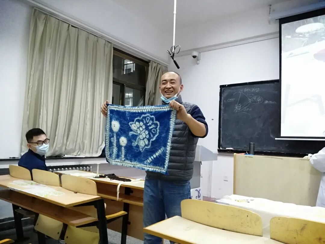 《中国纺织非遗》的课堂不只开在教室里,还开在校园里、开在“三下乡”的调查地点里。在首次开课时,选课同学相对较少,闫旭和同学们穿着在课上制作的扎染服装在校园里合影,他也推荐同学们去参加每周三在学校图书馆举办的“非遗大讲堂”。在暑假期间,闫旭组织“三下乡”团队,去青州古城探索“非遗”民间艺术,还走进菏泽的中国鲁锦博物馆,并采访博物馆馆长。活动结束之后,当地媒体对那次社会实践活动进行了专题报道。