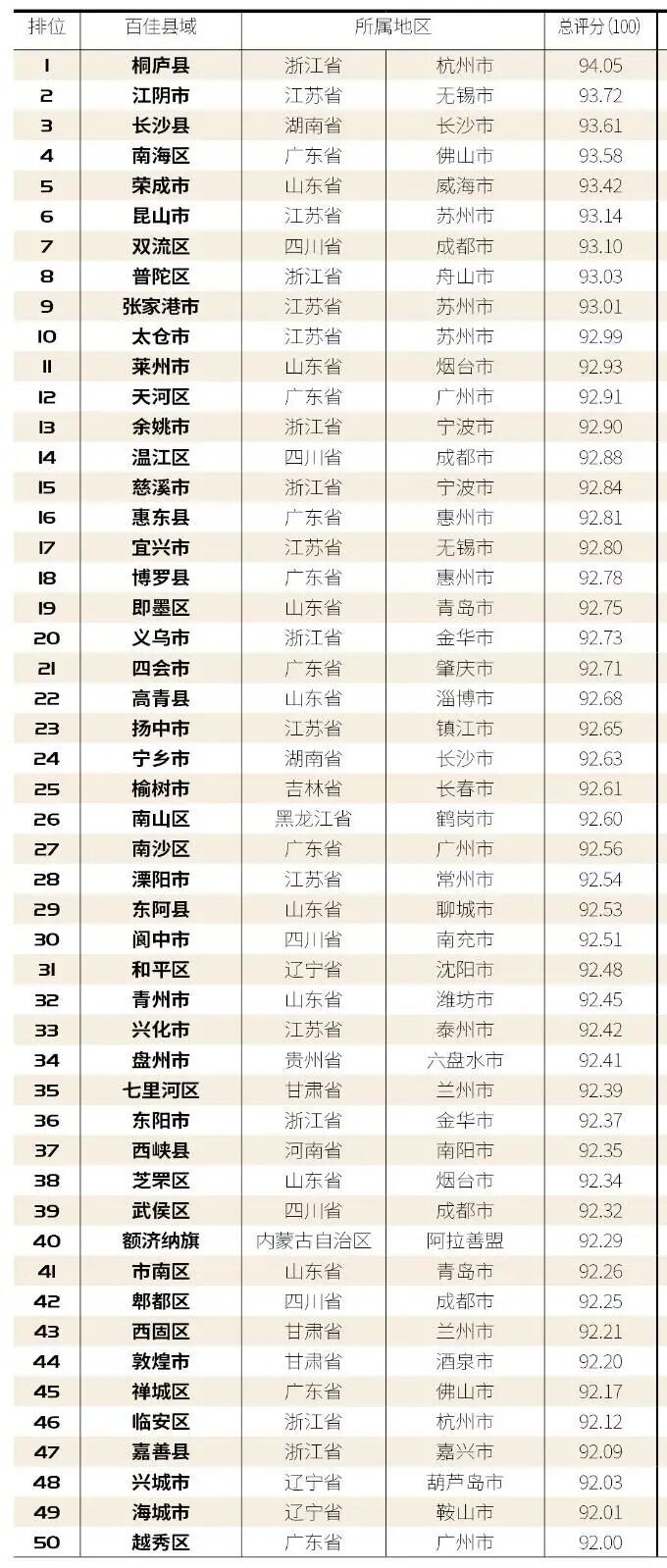 《小康》杂志社联合多个国家权威部门和专业机构,面向中国县域基层行政单位,推出中国县域发展系列排行榜,“2020中国最具幸福感百佳县市”榜单新鲜出炉,排名前十的县市分别为:浙江省杭州市桐庐县,江苏省无锡市江阴市,湖南省长沙市长沙县,广东省佛山市南海区,山东省威海市荣成市,江苏省苏州市昆山市,四川省成都市双流区,浙江省舟山市普陀区,江苏省苏州市张家港市,江苏省苏州市太仓市。