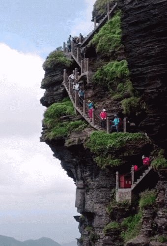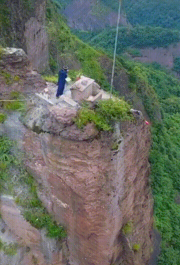 这里常年云雾弥漫,山风怒号能站立的地方不足3平米却修了座小庙如今仍有人朝拜