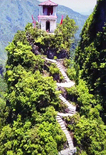 三面环水平地拔起上山之路极为艰难但山顶居然还有一小小的观音庙