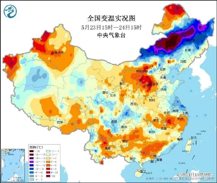 【山东省气象台】5月25日06时继续发布内陆大风蓝色预警:预计25日白天到夜间,青岛和日照南风转北风5~6级阵风7~8级,烟台和威海北风5~6级阵风7~8级转南风4~5级阵风6~7级,其他地市北风4~5级阵风7~8级转南风3~4级。另外,25日白天,滨州、东营、淄博、潍坊、枣庄、临沂、日照、青岛、烟台和威海有雷阵雨,局部地区有冰雹,雷雨地区雷雨时阵风8~10级。