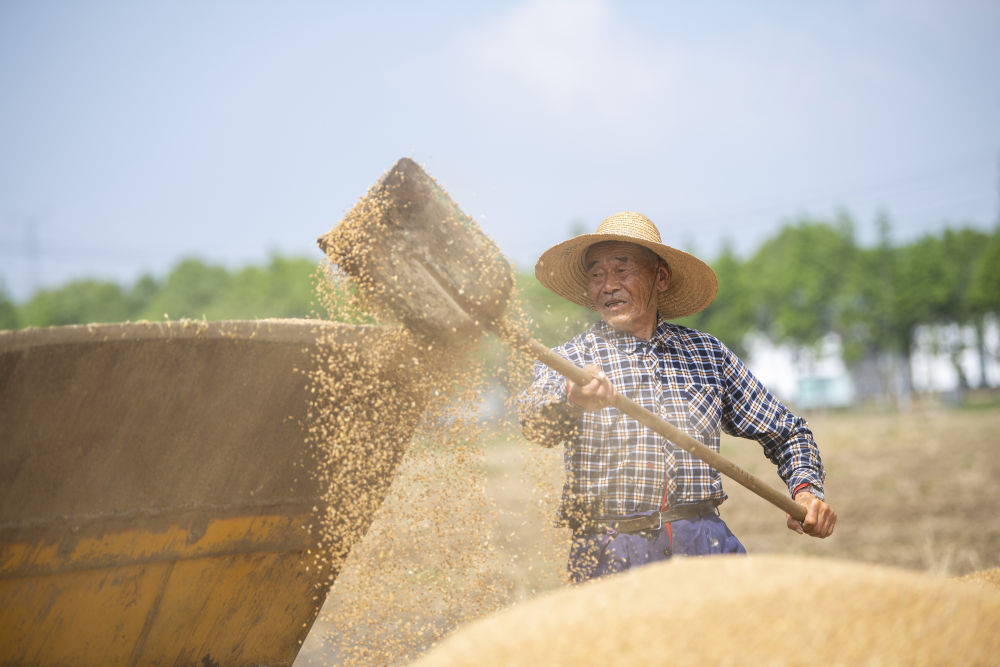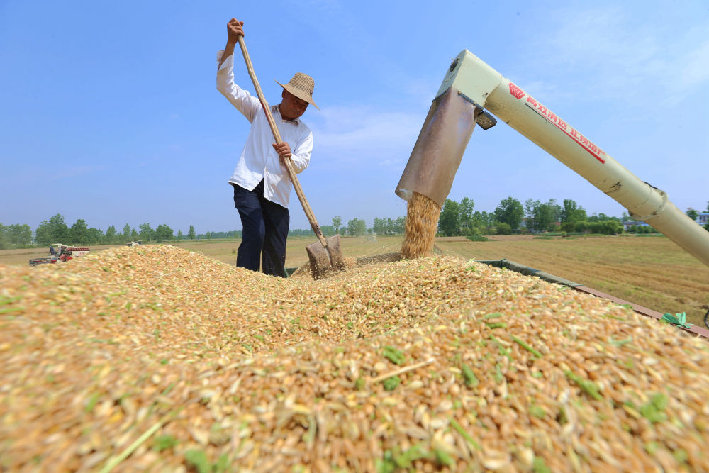 5月23日,在安徽省铜陵市铜官区西湖镇柴塘村,农户在抢收小麦。新华社发(过仕宁摄)