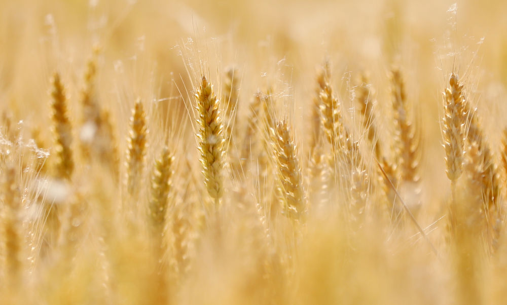 5月23日在山东省临沂市郯城县郯城街道拍摄的饱满的麦穗。新华社发(张春雷 摄)