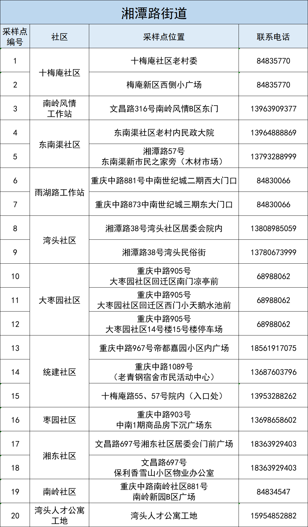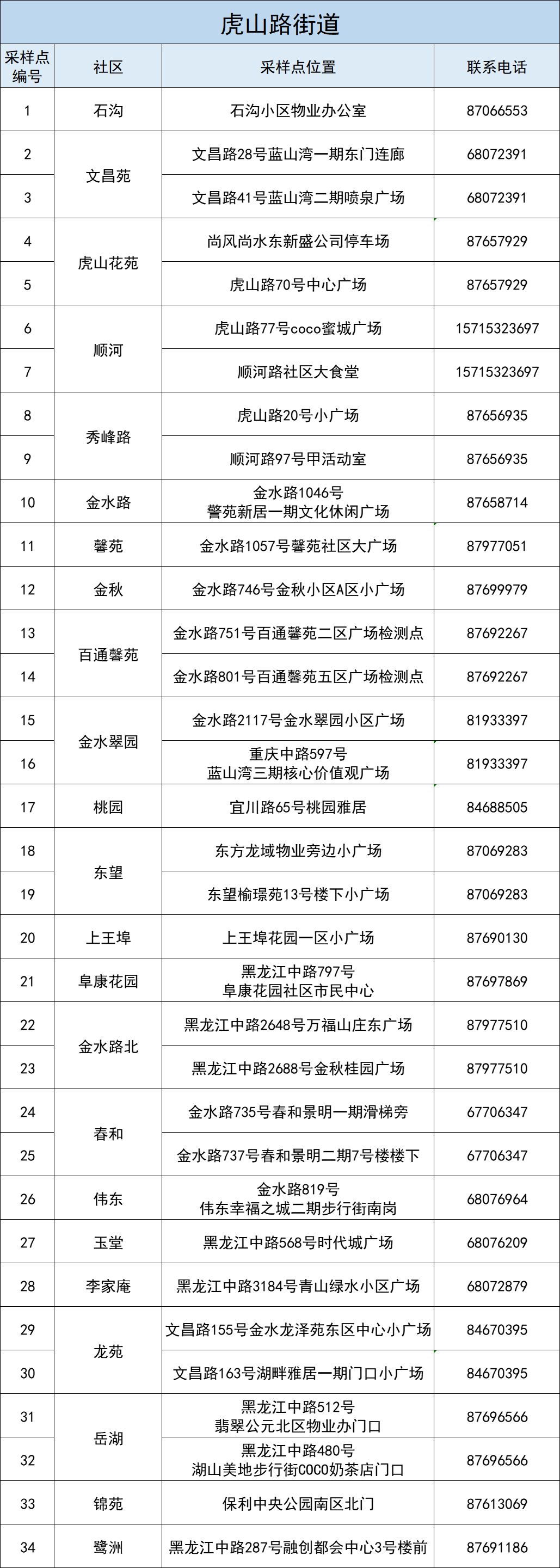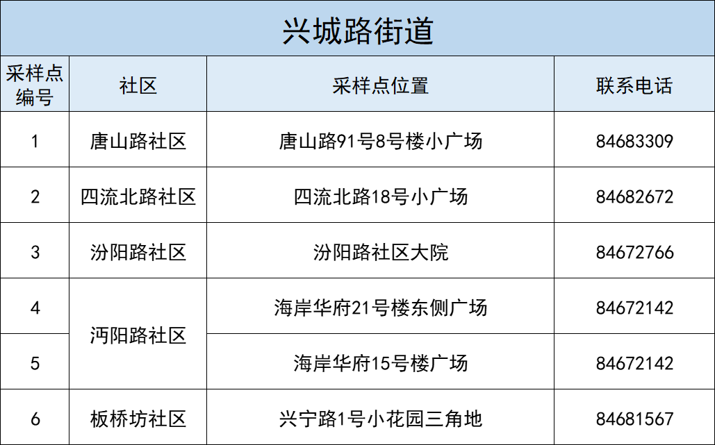本轮区域全员核酸检测部分采样点位置做如下调整: