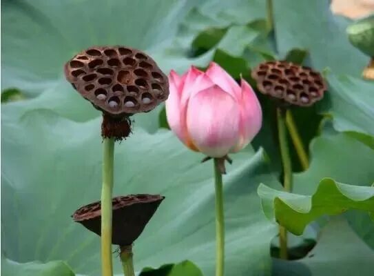 荷花生有莲蓬,莲蓬就是荷花的花托,里面有莲子,而睡莲没有莲蓬。