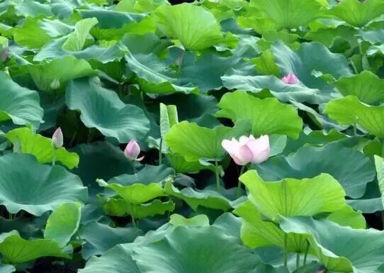 睡莲的叶子都有一个三角形的缺口,且花和叶片大多是浮在水面上的,更高挺一点儿的也是贴近水面;而荷叶却是高出水面很多,亭亭玉立,叶片的外形呈现无裂缝的圆形。