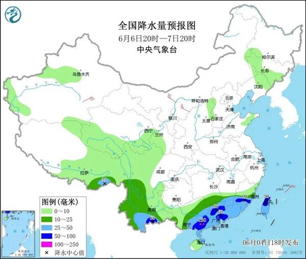 6日20时至7日20时,贵州东部、华南大部、湖南南部、江西南部、福建南部以及云南西部和南部、西藏东南部等地的部分地区有中到大雨,其中,云南南部、广西东南部、广东西部、福建南部等地的部分地区有暴雨,局地大暴雨(100~130毫米)。