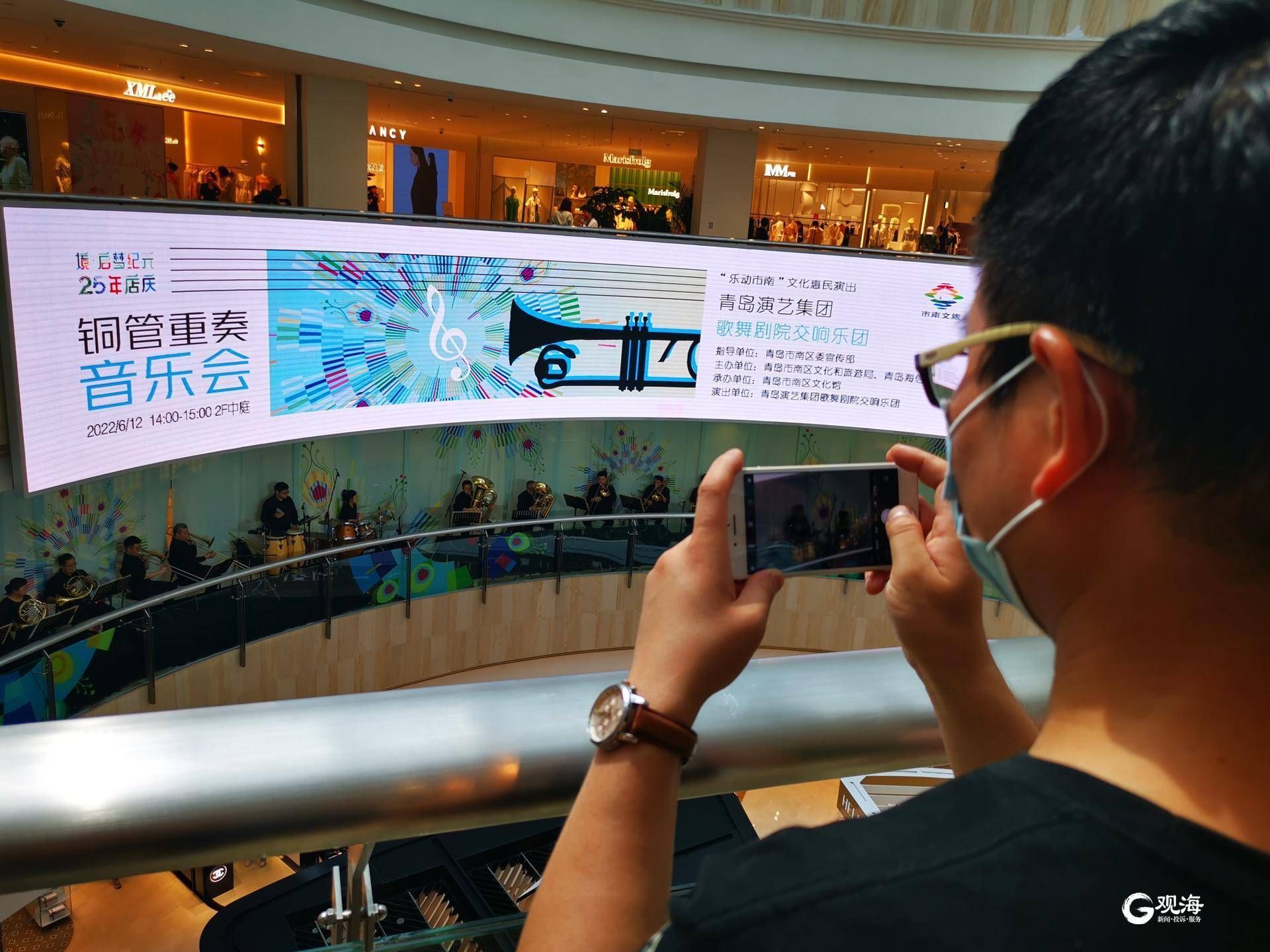 本场演出是“乐动市南 文化惠民”系列演出,由市南区委宣传部指导,市南区文化和旅游局、青岛海信广场联合主办,市南区文化馆承办,青岛演艺集团歌舞剧院交响乐团带来了精彩的铜管乐音乐会。曲目中既有《西班牙进行曲》等世界名曲,也有《名侦探柯南》、《葫芦娃》等孩子们喜欢的乐曲,更有时下年轻人熟悉的《青春修炼手册》、《夜空中最亮的星》等流行音乐,可谓囊括了全年龄段听众。商场观众零距离聆听经典,观看专业院团精彩演出,现场不时响起热烈的掌声。